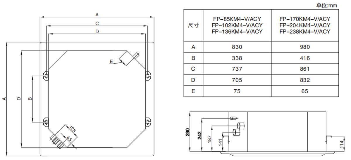 船舶專用四出風(fēng)卡式風(fēng)機(jī)盤管